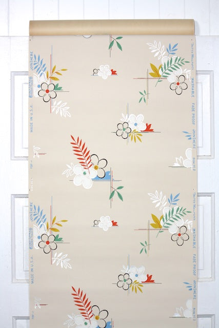 This roll of wallpaper is an authentic, old stock roll from the 1940s. It is priced by the double roll, which is one single bolt of wallpaper. One double roll of vintage wallpaper will cover about 50 square feet. If you have questions about how much paper to order, please contact me with your room dimensions.